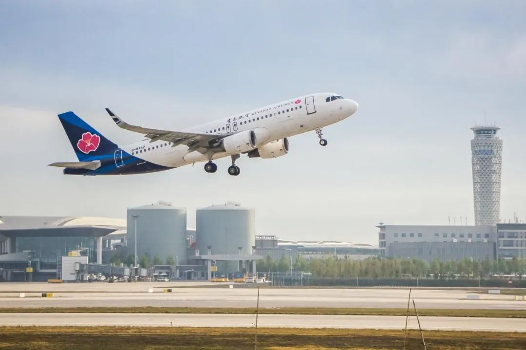 (青岛航空飞机从青岛胶东国际机场起飞)