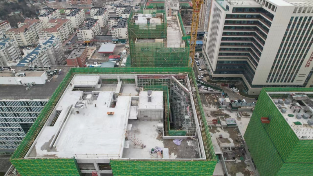 在市公共卫生中心项目建设现场,管理、施工人员240余人在现场作业,数台套各类施工设备奋战在建设工地,目前项目正处于二次砌筑阶段。作为青岛市重点公共卫生项目,青岛市公共卫生中心项目的落成将极大改善周边群众的就医环境和医务人员的工作环境,有效提升医院的综合服务能力,为青岛市民生工程的进一步完善和可持续发展提供强有力的支撑。