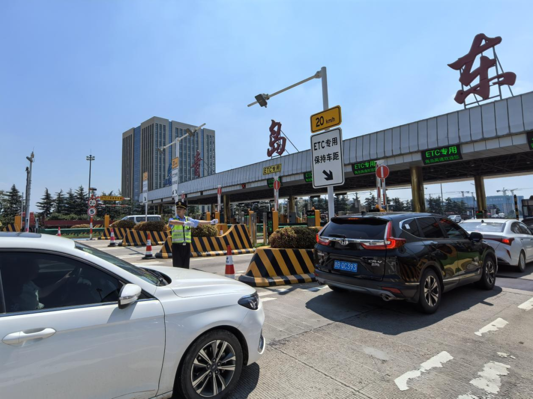 (图为青岛东收费站交通疏导现场)