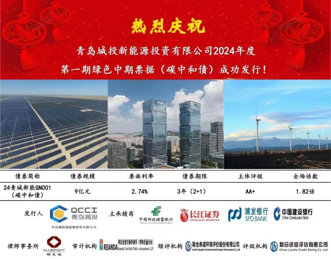 青岛城投新能源集团成功发行碳中和绿色中期票据
