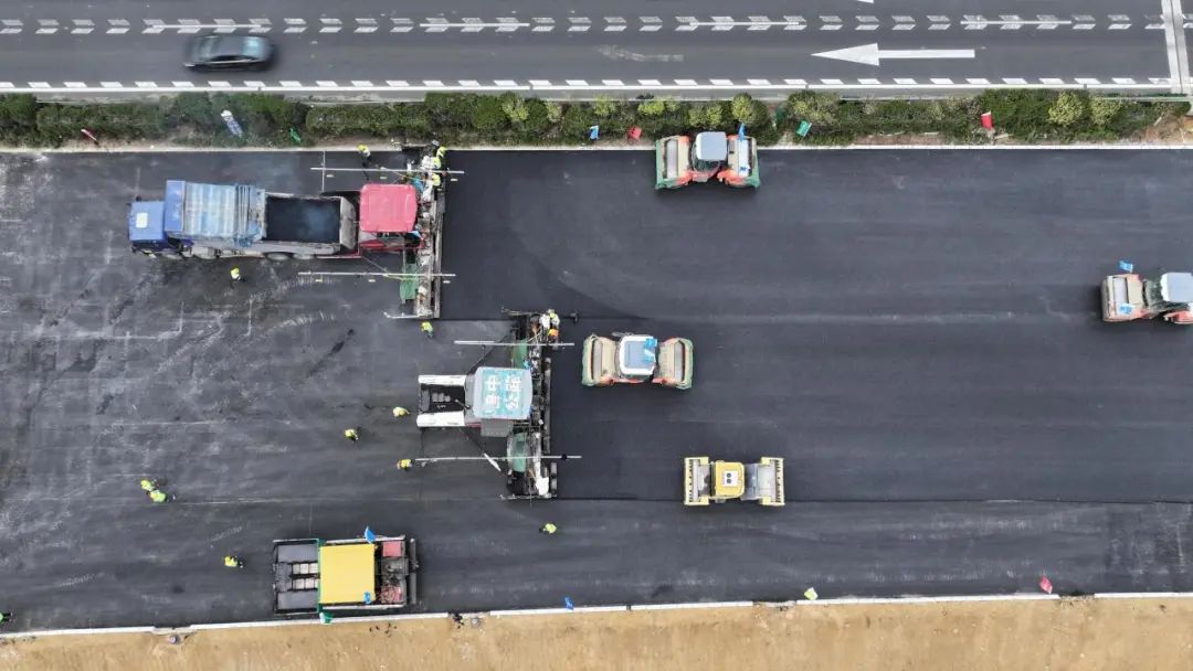 此次完成沥青面层贯通的ZT9段单幅全长17.4km,沥青上面层厚度4cm,路面设计宽度18.75m。为最大限度抢抓路面施工黄金期,沈海高速改扩建工程团队尽锐出战,以“进场即决战、开工即冲刺”的姿态,有效化解交通导改、土地征拆、交叉施工等多重困难,用时46天完成左幅主线沥青面层施工,率先实现沈海高速改扩建工程左幅主线沥青路面贯通任务。
