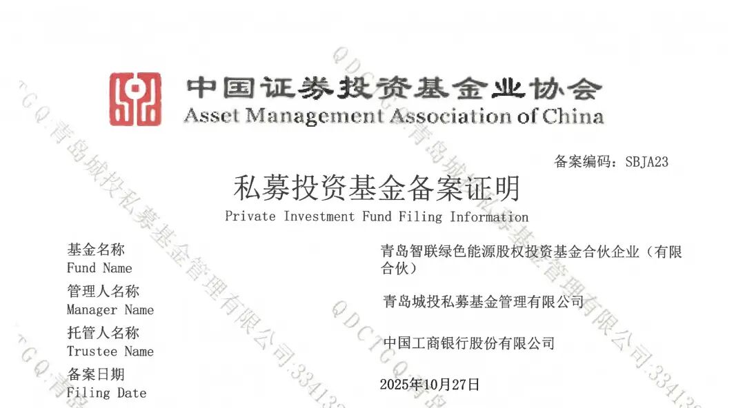 市级基金改革首单落地!青岛城投发起组建的智联绿色能源基金成功备案