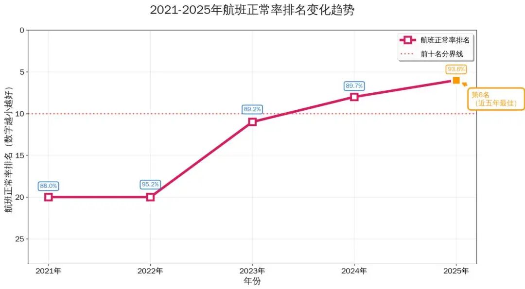 2025年青岛航空航班正常率93.56%实现“提质进位”,创近五年新高。同时,航班临时取消率进一步降低,运行稳定性显著增强。每一组向上攀升、刷新纪录的数据背后,都是对万千旅客“准时抵达”承诺的郑重兑现,彰显了公司致力于提升公众出行效率、保障运行顺畅的企业担当。