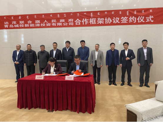 最后,在双方领导见证下,青岛城投新能源投资有限公司与包头市达茂联合旗人民政府签署了战略合作框架协议。