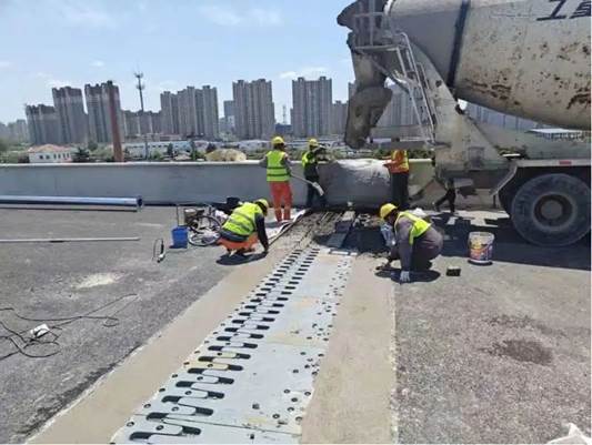 (图为桥梁主线组织伸缩缝施工现场)