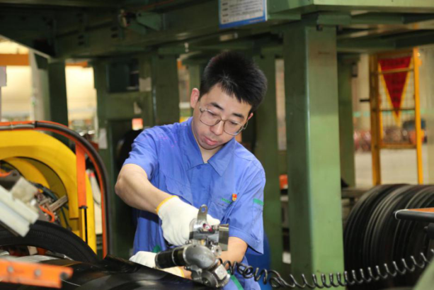 周立强,青岛双星轮胎工业有限公司商用4.0经营单元成型主机手。他从事成型主机岗位多年,始终以一颗钻研好学之心奋斗在一线,严抓半成品质量,带头提高生产效率;他立足岗位不断学习新知识,掌握了辅机、裁断等重要岗位的操作技能,是一岗多能的多面手,荣获青岛市第十六届职业技能大赛橡胶成型工状元、青岛市青年岗位能手、青岛市技术能手、西海岸新区“新区工匠”等荣誉。