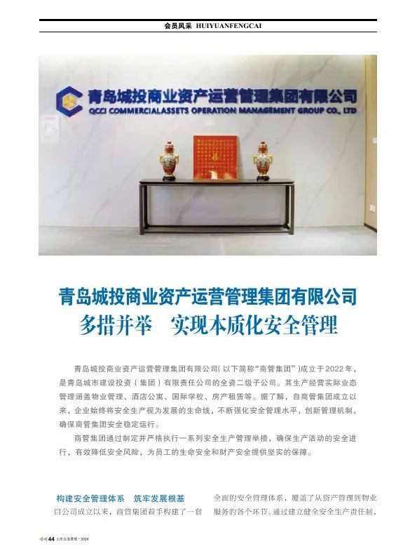 为积极响应山东省、青岛市关于安全生产治本攻坚的三年行动计划及其工作要求,青岛城投集团旗下商管集团推行了创新性管理策略,持续强化安全管理水平。商管集团的工作实践和经验总结在山东省应急管理与安全生产协会主办的《山东应急管理》杂志的第95期正式发表,供业内参考和学习。