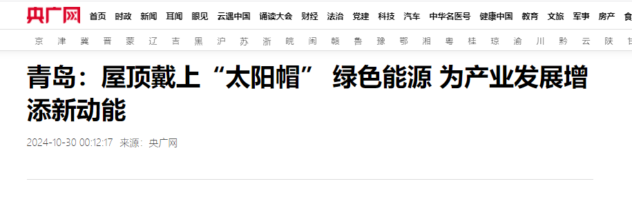 【央广网】青岛:屋顶戴上“太阳帽” 绿色能源 为产业发展增添新动能