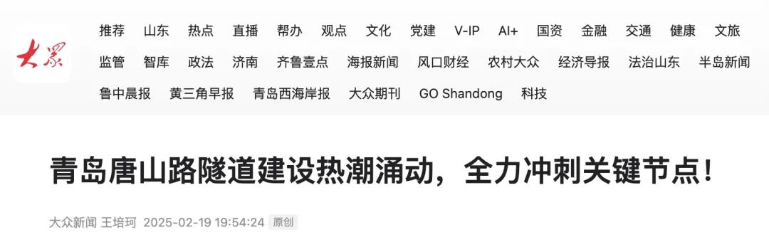 【大众网】青岛唐山路隧道建设热潮涌动,全力冲刺关键节点!