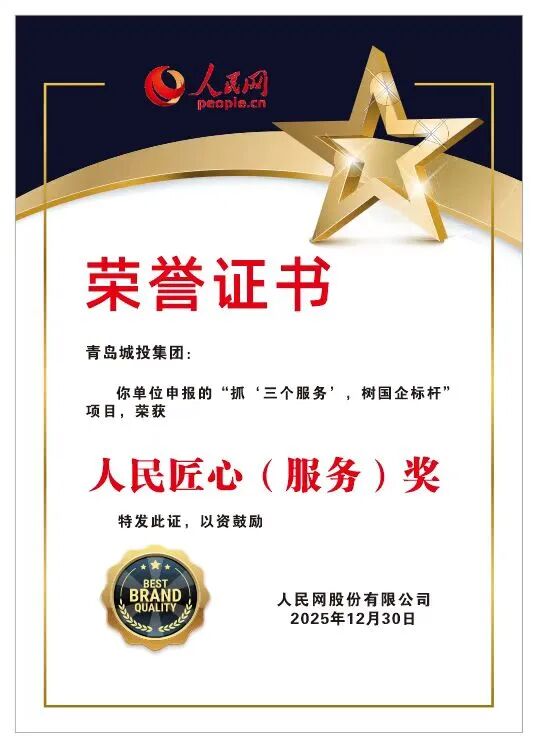 12月30日,人民网在北京举办“2025人民财经论坛”,青岛城投集团荣获“2025人民匠心(服务)品牌”称号,以下为报道原文:
