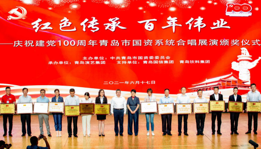 各市属企业合唱队、驻青国企联合合唱队、国资委机关合唱队等24家单位代表队,以精心编排的红色歌曲合唱展演形式,向党的百年华诞献上最真挚美好的祝福。集团代表队演绎了《松花江上》这一经典曲目,饱含深情的家国情怀,弘扬了爱党爱国的民族精神,把人们带入到那个栉风沐雨、艰苦卓绝的岁月,传达了“感党恩、听党话、跟党走”的信心与决心,精彩表现获得了优秀演唱奖。