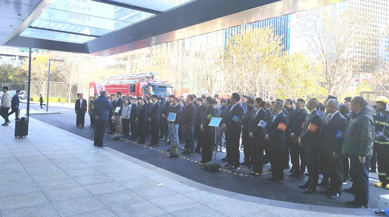 为迎接山东省第14个“消防宣传月”,进一步增强全员消防安全意识,提高火灾应急避险处置能力,11月22日上午,青岛城投集团2024年消防疏散逃生演练在上实中心T2办公楼成功举行。集团领导、员工和租户代表共计190余人参加演练活动。(图为演练现场)此次演练模拟18楼区域发生火情,接到烟雾报警器报警信号后,消防监控室立即播放消防广播,启动灭火及疏散应急预案,并向消防救援机构报警,现场人员引导消防救护车快速抵达事发现场。