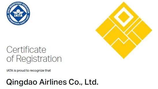 城投集团旗下青岛航空获颁国际航空运输协会运行安全审计认证注册证书