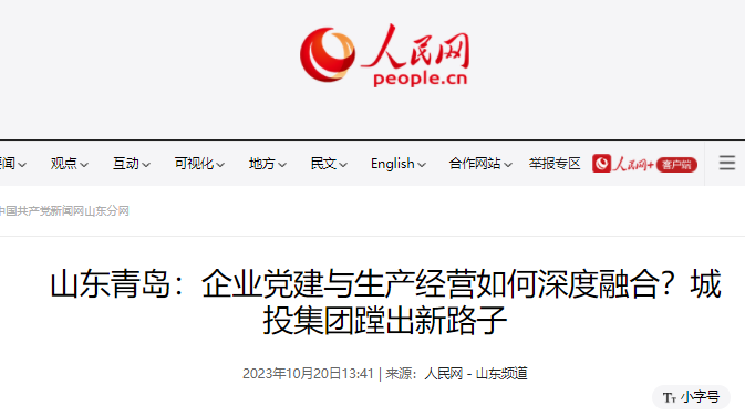 人民网:企业党建与生产经营如何深度融合?青岛城投集团蹚出新路子